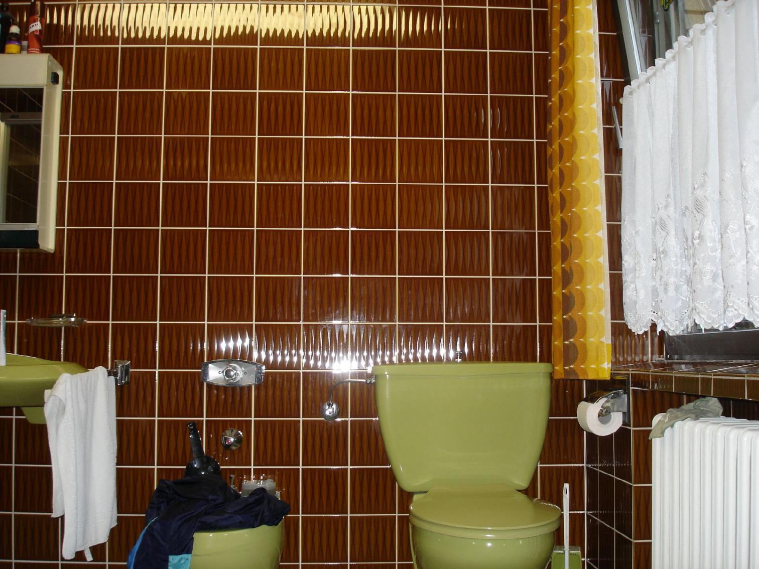 Bei unserem Beispiel wurde ein funktionierendes Badezimmer aus den 1970-er Jahren umgebaut mit der Absicht, die Erfordernisse eines Rollstuhlfahrers zu berücksichtigen. Es sollte die Optik nicht beeinträchtigt werden.